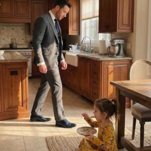 A Wealthy Man Found an 8-Year-Old Girl Hiding in His Pantry to Eat Leftovers Just to Protect Her Housekeeper Mom — What He Did Next Left Everyone Stunned The Night He Found Her in the Pantry No one expected to find a child inside the house that night. It was well past midnight when Jonathan Hale returned to his hilltop estate overlooking the outskirts of Northbridge, Illinois. The security detail stayed outside, as always. Jonathan preferred silence when he came home late. Silence meant control. As he stepped inside, the marble floors reflected soft amber light from the chandeliers above. Everything was in its place. Too perfect. Then he heard it. Not footsteps. Not voices. A faint, fragile sound. A quiet scrape. The kind made by someone trying very hard not to be heard. It came from the kitchen pantry. Jonathan’s hand moved out of instinct, not panic. Years in the private security world had trained him to react before thinking. Any intrusion into his home usually meant one thing. But when he opened the pantry door, his world shifted. A little girl sat crouched in the corner. She couldn’t have been older than eight. Thin arms wrapped around herself. Shoes worn down at the soles. In her hands was a half-eaten piece of bread and a small plastic container holding cold pasta—food clearly discarded earlier that day. Her eyes met his. They weren’t defiant. They weren’t sneaky. They were terrified. And before Jonathan could say a word, she whispered something that cracked something deep inside him. “Please… don’t fire my mom. She didn’t know I followed her here.” A Child Who Wasn’t a Thief Jonathan felt pressure in his chest, sharp and unexpected. The girl tried to hide the food behind her back, as if protecting it also meant protecting her mother. She wasn’t stealing for pleasure. She wasn’t curious. She was hungry. Her mother—Marisol Reyes, one of the housekeepers—had worked in his home for nearly three years. She never complained. Never asked for extra hours. Never spoke about her personal life. Now he understood why. Jonathan slowly lowered himself to her level. His tailored suit creased against the pantry floor. “What’s your name?” he asked gently. Her lips trembled. “Lily,” she whispered. “How long have you been coming here, Lily?” She shook her head, afraid to answer. “Does your mom know?” A violent shake this time. Tears spilled down her cheeks. “She says we don’t take things that aren’t ours,” Lily whispered. “She says we’re not charity.” The words hit harder than any threat ever had. Pride. Even in hunger. Jonathan exhaled slowly. He thought of his own childhood, of nights when his mother skipped meals without explanation. That hunger had shaped him, hardened him. But Lily wasn’t hardened. She was just brave PART 2 IN C0MMENT 👇👇👇