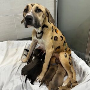 Investigator finds starving dog tied in hot sun — covered in leopard spots
